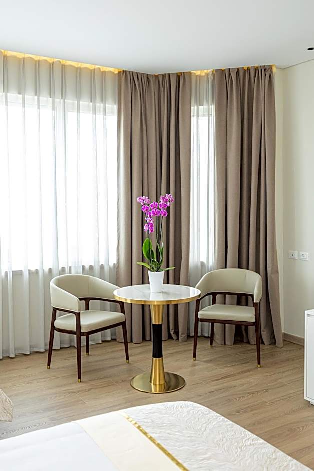With reviews to its name, boasts top-notch services including free private parking, complimentary Wi-Fi, and air conditioning. Guests can enjoy a variety of facilities such as a 24-hour front desk, a bar, a restaurant, and a sun deck. The hotel also offers soundproof rooms, ensuring a peaceful night's sleep after a day of sightseeing in Tirana.
